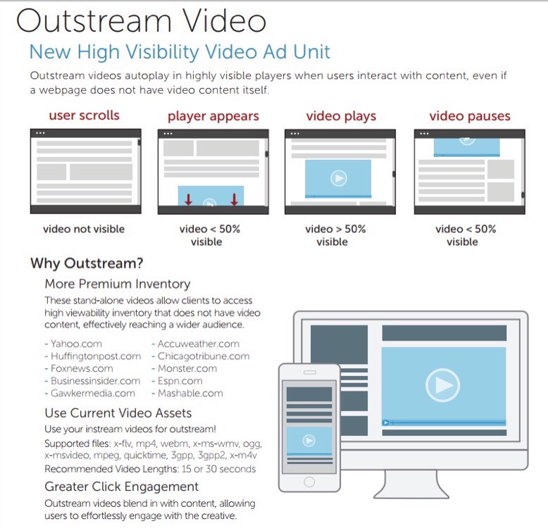 Out-stream ads are videos that aren’t accompanied by any other content. While you need to wrap your linear ads around elements such as a different video or a blog post, an out-stream ad doesn’t need to be tied to anything.